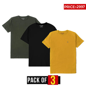 1. Olive Green t-shirt 2. Black t-shirt 3. Yellow t-shirt Simplicity meets style in these timeless slim-fit plain cotton tees. A wardrobe staple for everyone! 100% combed cotton.