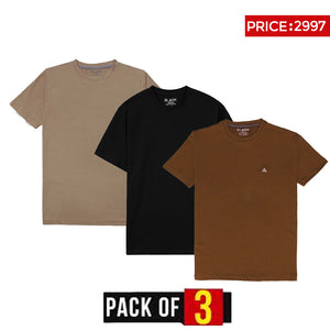 1. Skin t-shirt 2. Black t-shirt 3. Chocolate Brown t-shirt Simplicity meets style in these timeless slim-fit plain cotton tees. A wardrobe staple for everyone! 100% combed cotton.